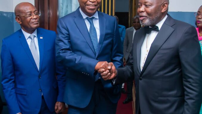 À la veille de l’ouverture de la session budgétaire et au lendemain de l’entrée en fonction du nouveau Gouvernement, le Président de l’Assemblée Nationale, le Professeur Vital Kamerhe, accompagné de la Questeure Chimène Polipoli, a reçu le samedi 23 Août 2025 au Palais du Peuple le Vice-Premier Ministre, Ministre du Budget, Adolphe Muzito Mfumusi, ainsi que le Vice-ministre du Budget, Elysé Bokumuana.