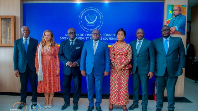 Représentant la Première Ministre Judith Suminwa en déplacement à l’intérieur du Pays, le Vice-Premier Ministre, Ministre de l’Intérieur, Sécurité, Décentralisation et Affaires Coutumières, Jacquemain Shabani a lui aussi échangé le mardi 27 Mai avec la mission de bons offices de l’Assemblée Parlementaire de la Francophonie.