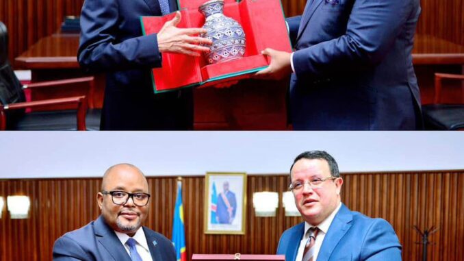 Le premier entretien a été avec Rachid Talbi El Alami, Président de la Chambre des Représentants du Maroc. Accueilli avec honneur au Palais du Peuple, il a rappelé la longévité des relations entre les deux pays, affirmant que « le Maroc soutient inconditionnellement la souveraineté de la RDC ». Il a également évoqué la solidarité populaire, notamment le soutien marocain lors du récent match RDC–Nigéria.